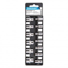 6-point hex socket for maximum torque transfer to the face of the fastener. Precision cold-forged, hardened and tempered chrome vanadium steel. Fully polished and nickel chrome-plated for durable corrosion resistance. Chamfered ends and thin walls for positive location on fastener. Contents: 8, 10, 11, 12, 13, 14, 15, 17 and 19mm...