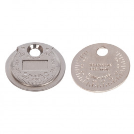 Coin-type tool with flanged hole to adjust the side wire without damaging the centre element and outer rim to measure the electrode gap. Metric 0.5 - 2.55mm, imperial 0.02 - 0.1". Solid alloy steel...