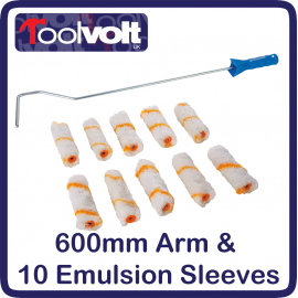 Long Reach Roller Kit.Long reach roller kit is perfect for getting in those hard to reach places, like behind radiators or painting between fitted shelves.This kit has the following tools600mm Long Roller Arm Frame10 Push on Emulsion Roller Sleeves.Mini Roller Frame Galvanised steel frame for 100mm mini roller sleeves. Simple push-fit sleeve connec..