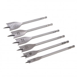 Fully hardened high carbon steel bit. Precision ground tri-point bit for a clean cut and reduced splintering. For drilling softwood, medium hardwood, particle board, plasterboard, plastics and fibreglass. For use with drills, drivers and hand braces. Includes 6, 10, 13, 16, 20, 22, 25 and 32mm bits, 300mm extension bar and hex key...