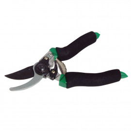 Aluminium bypass pruner. Steel blade with black finish. Aluminium handle with vinyl grips...