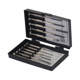 Hardened and tempered steel shanks with hexagonal swivel heads. Includes Phillips PH00, PH0 and PH1;slotted 1.0, 1.2, 1.4, 1.8, 2.4, and 3.0mm; scratch awl and magnet...