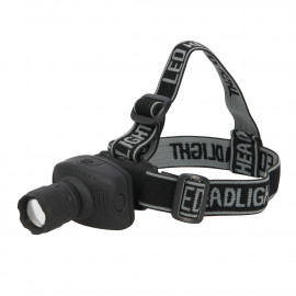 Rubberised ABS construction 1W LED head torch. Features spotlight to floodlight zoom function. 50 lumen output. Requires 3 x AAA batteries. Length 65mm...