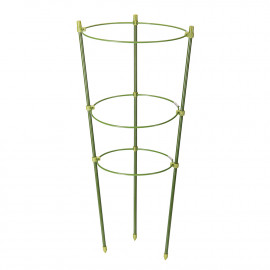 Aluminium and green plastic construction. 3 x stakes with 3 x rings. Height 450mm. Ring sizes: 140mm, 155mm and 175mm dia. Provides support for growing plants, including vegetables. Folds down flat for convenient storage...