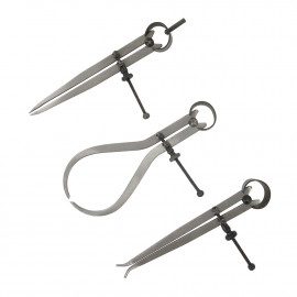 Chrome-plated steel. Locking knurled handles and automatically self-centring plungers with constant spring tension for uniform contact pressure. Quick inside measuring of cylinder or hole bore by transferring dimension for external measurement. Indirect measurement by outside micrometer. Includes: 8 - 12.7, 12.7 - 19, 19 - 32, 32 - 54, 54 - 90 and ..