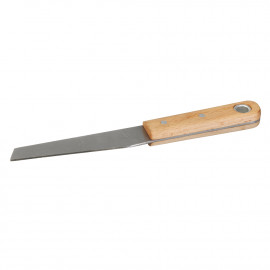 Single-piece, solid-forged steel hacking blade with ergonomic beech handle, riveted for strength. Removes putty and sealant from window frames, allowing clean removal of glass. Thick, full-tang steel offers excellent weight for effortless putty removal. Hanging hole for storage...