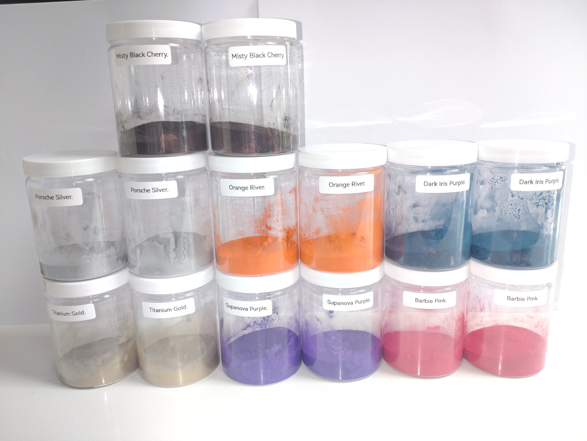 Polyester Powder Coat in Metallic Misty Black Cherry, supplied in a clear plastic jar with a screw tight lid with extra space to top up more later. There is 20 grams of powder in this jar, about 2 table spoons, in case you need to see a visual image. Metallic Misty Black Cherry base with a heavy metallic flake. This color is a polyester metallic powder coat and has a glossy finish.